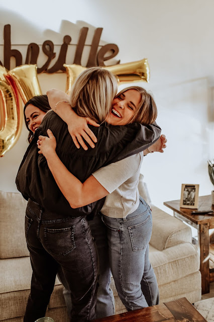 I was texting the girls that were headed back but not everyone was there yet (Bradleys family + friends, he is from Nashville). We stopped at a cozy coffee shop and did our best to convince her we were there for the weekend and how we should plan our day to celebrate! My nerves were still an all time high and I don't think the delicious iced latte helped me cool down any. A short trip and back into the car to the condo. As we were walking in the house Bradly said we have one more surprise.... she may have been suspicious of something, but not what she was about to see.